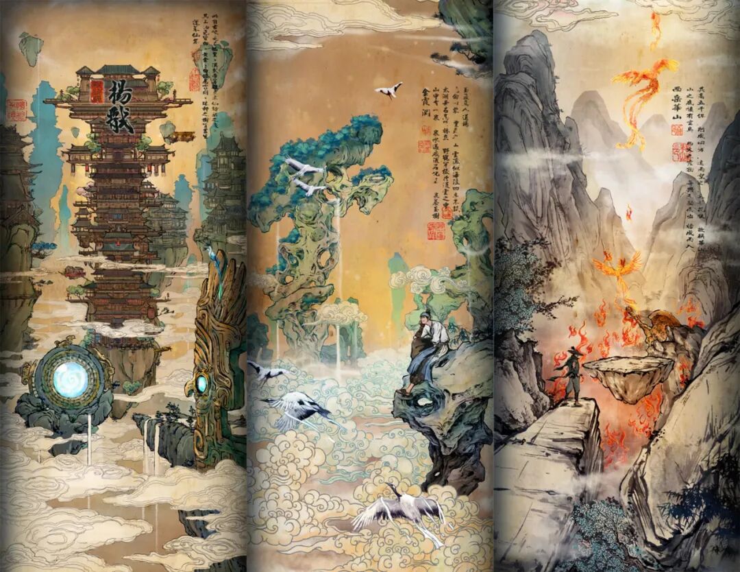 杨戬背身而立,祥云萦绕山间,金光乍泄——古风仙境风云再起,瑰丽恢弘的神话世界等你探索!