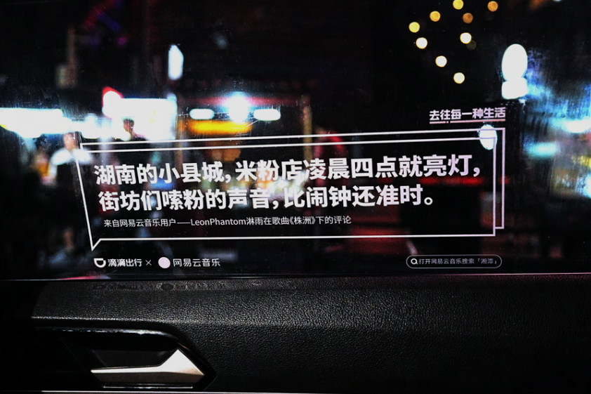 通过在滴滴车厢内展示城市主题歌单和用户乐评,将音乐与城市文化深度结合,为乘客打造沉浸式的城市音乐体验。