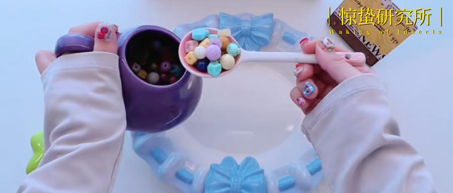 很多人第一次刷到盲勺视频,并不是为了买盲勺对应的商品,而是被画面本身吸引:粉嫩的色系、珠子哗啦哗啦落到盘里的声音、整齐摆放的萌系商品。这种视觉和听觉加在一起,带有让人放松的效果。Bella说她现在刷到盲勺视频,会当成助眠视频看,“对我来说就是白噪音,挺催眠的。”
