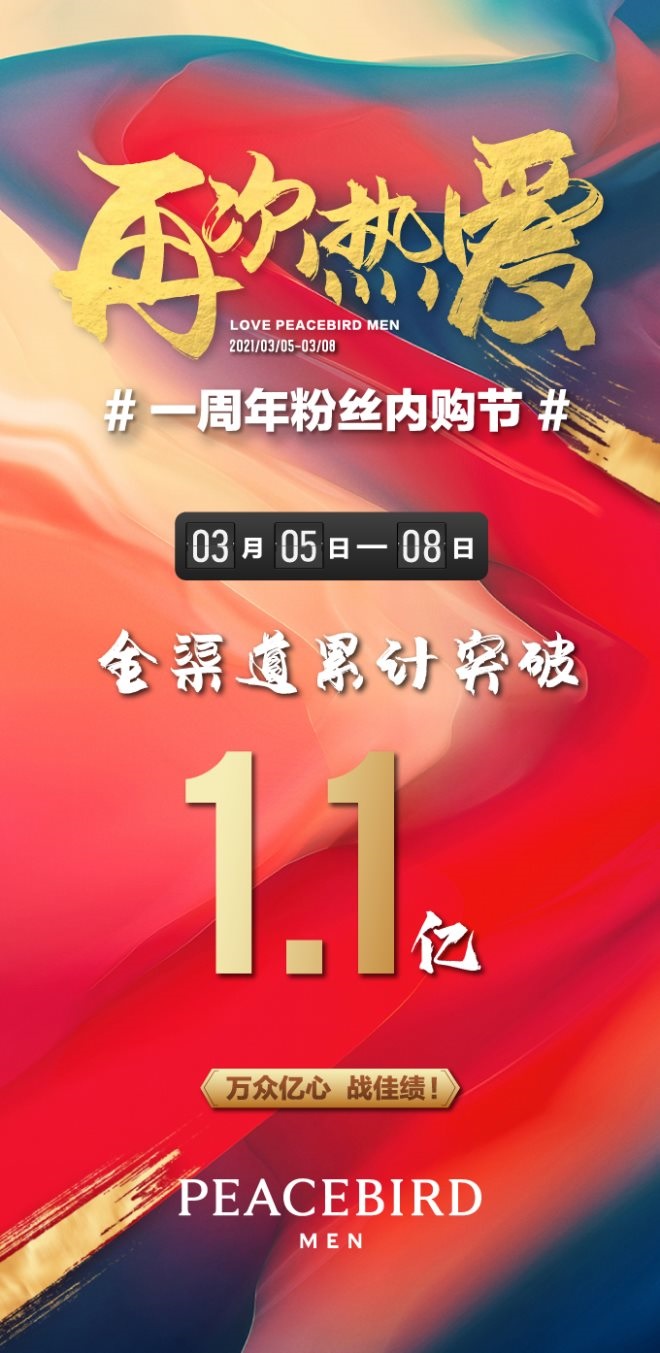 来源:联商网(原标题:太平鸟男装粉丝内购节成交额突破1.1亿)