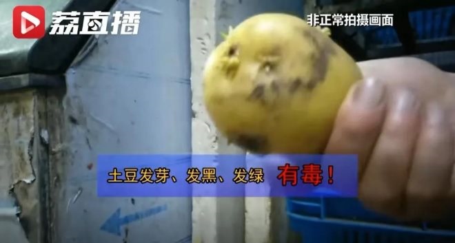 后厨一些土豆已经发芽、发绿、发黑,仍然在被使用。