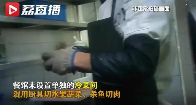 凉拌黄瓜直接在粗加工房就开始弄,并且菜板也没有洗没有消毒,刀也混合用,粗加工间不光是搞素菜,还包括杀鱼、杀牛蛙、切肉、斩鸭子之类。