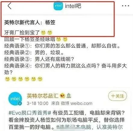 事情的起因相信大家都有所耳闻,就是英特尔想要推广自己的新产品Evo标准,然后找到了杨笠进行代言。