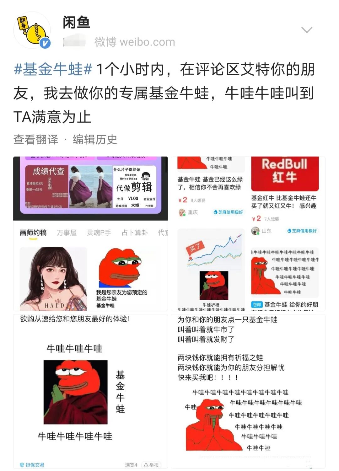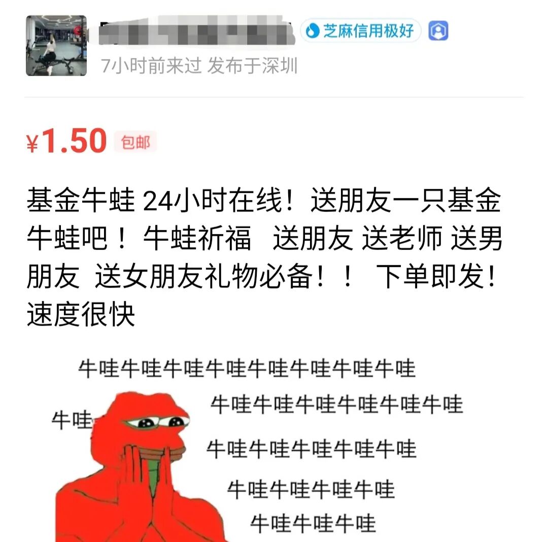 前阵子搞基人还在闲鱼上变卖家当回血,现在搞基人纷纷化身基金牛蛙,希望能在闲鱼上找到财富密码。看着网友们在闲鱼上玩得不亦乐乎,闲鱼也嗅到了营销的好机会,亲自下场抢单,没想到连牛蛙都被卷了。