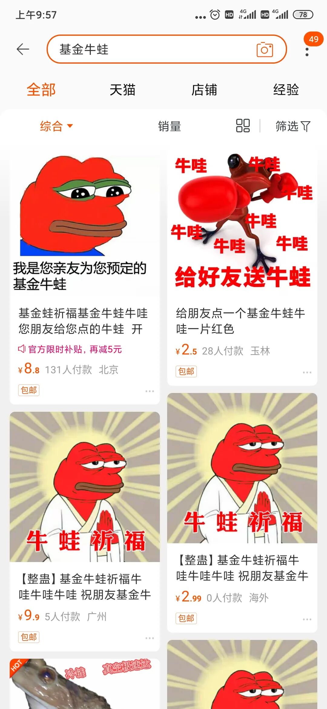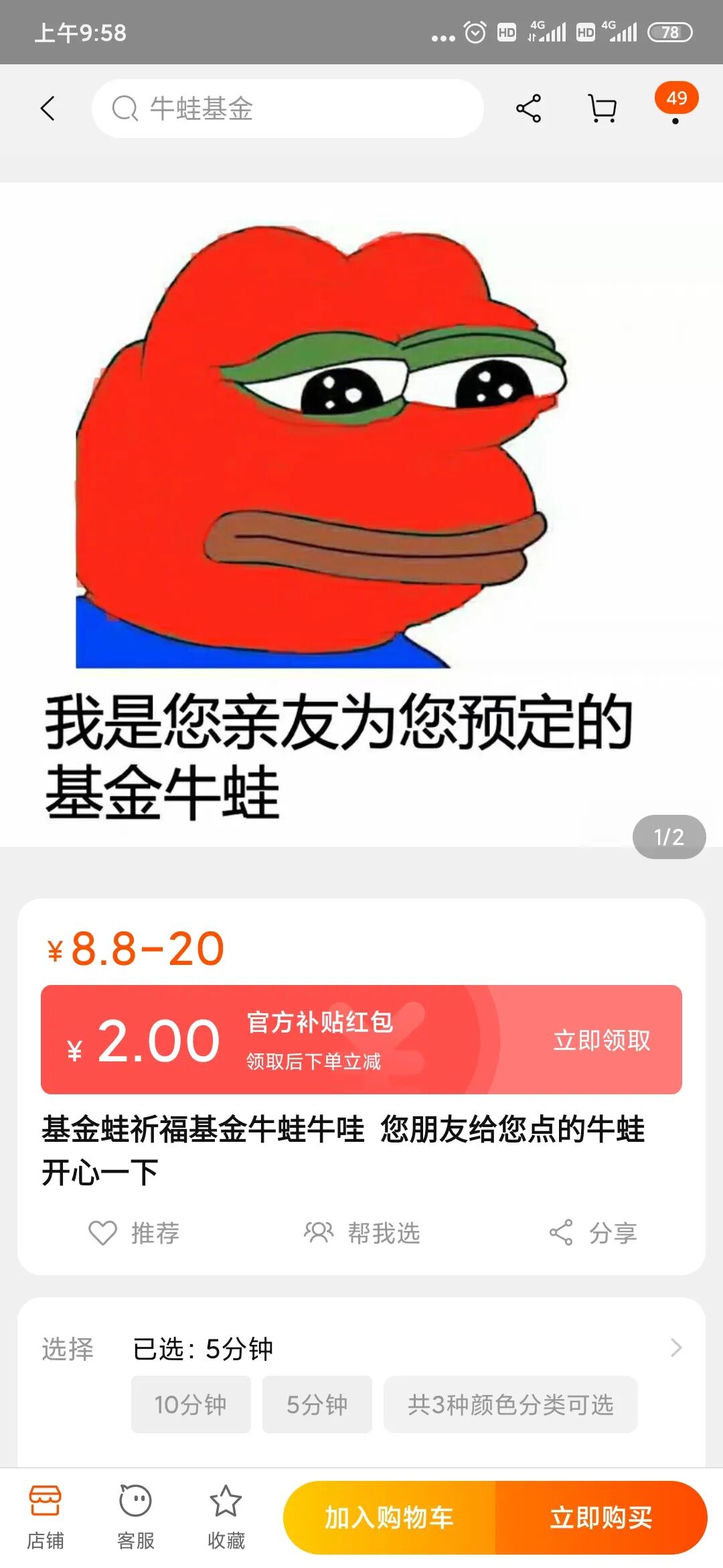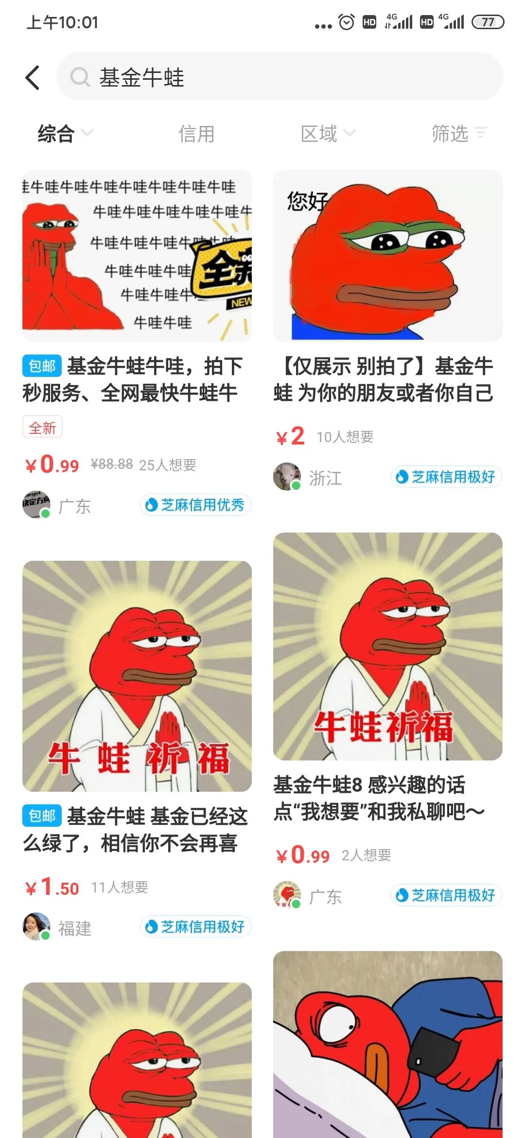 而在闲鱼上,“基金牛蛙”祈福服务也是如火如荼,最低只需9毛9就能慰藉那颗变绿的心。