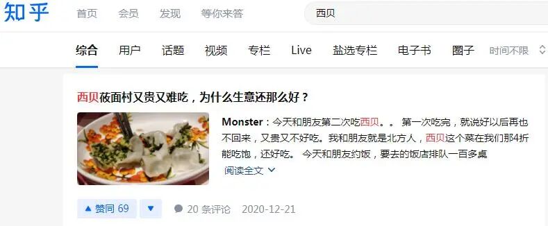 在知识青年的日常摸鱼之地知乎,敲下“西贝”迎面而来的第一个发问就是,“西贝莜面村又贵又难吃,为什么生意还那么好”。跟价格一样让网友扎心的,还有西贝高管们的言论。西贝老总贾国龙关于“715工作制”的表达,让一直忍受996痛苦的普通劳动大众神经紧绷。前副总裁疑似赞同“月薪5000以下不配吃西贝”的观点,更是激起“网怨”。