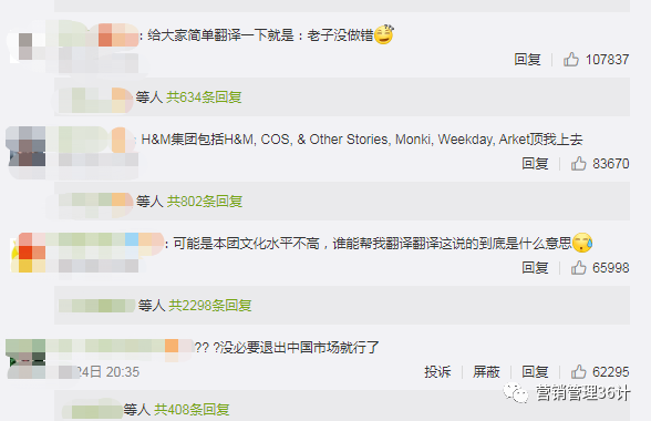 第一时间国内的各大电商平台,就纷纷下架了这个品牌,就在中国消费者正在等着官方出来道歉的时候,H&M中国官方微博发布了一条更让人气愤的说明: