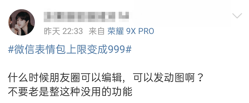 此次微信更新,也因为了网友热议,网友最关注的还是在表情包上限变成999。