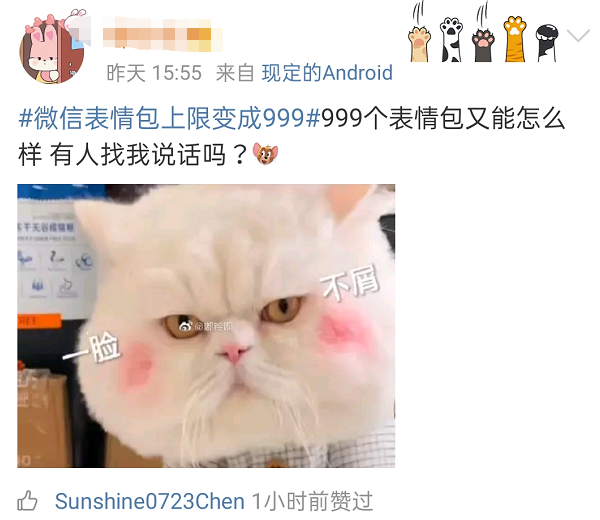 。曾经我们为了增添表情包不得不忍痛割爱删除已有表情包,这下好了,终于不用天天删表情包了,999个可以用到地老天荒!