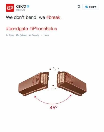 于是KitKat蹭着民众的讨论热度顺势推出了一则广告,广告文案就是:我们不仅要折它,还要完美地折断。