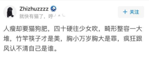 不止这些,4cm手腕、锁骨放硬币、90°直角肩、耳机腰、口罩腰、天鹅颈、筷子腿.....这一切都在告诉所有女生,颜值、身材就是一切。