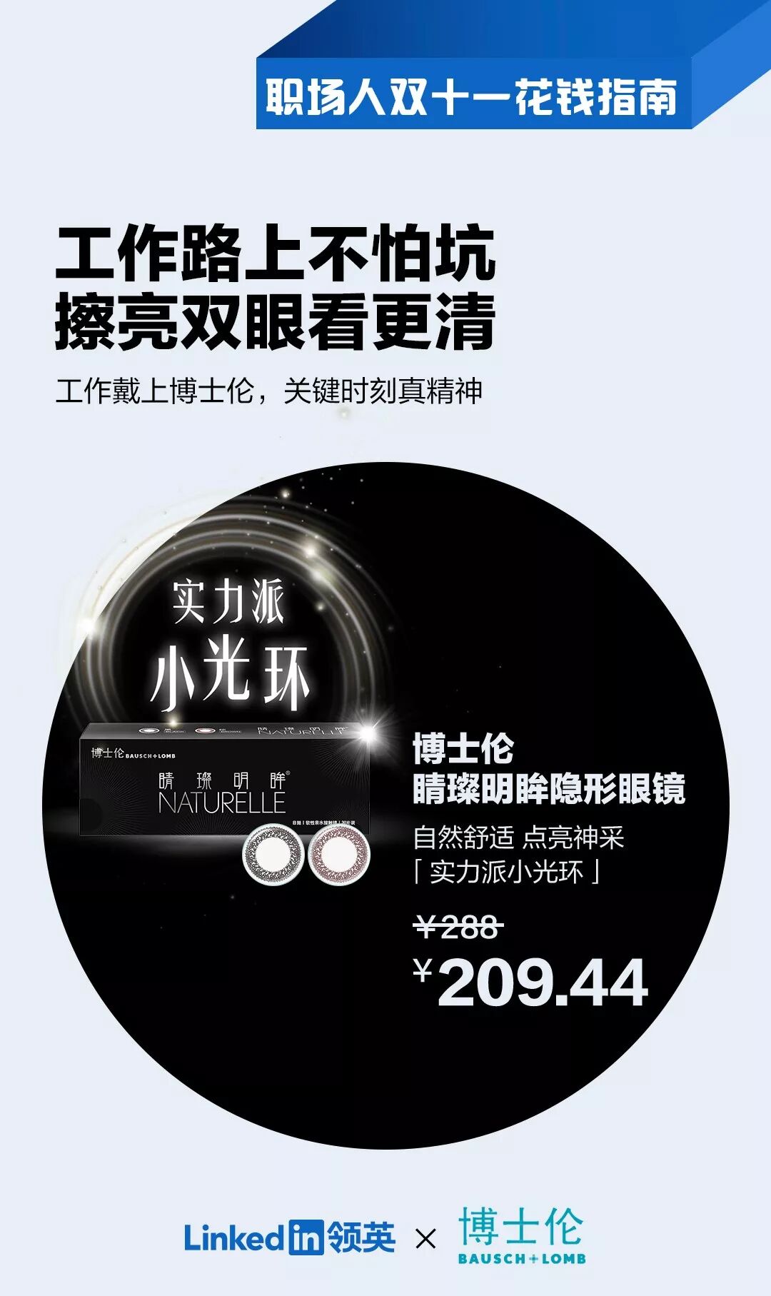 又比如针对博士伦眼镜“看得更清楚”的卖点,定制“工作路上不怕坑,擦亮双眼看更清”的专属文案,告诉职场人士要想不被坑,需要擦亮眼睛,一语双关。