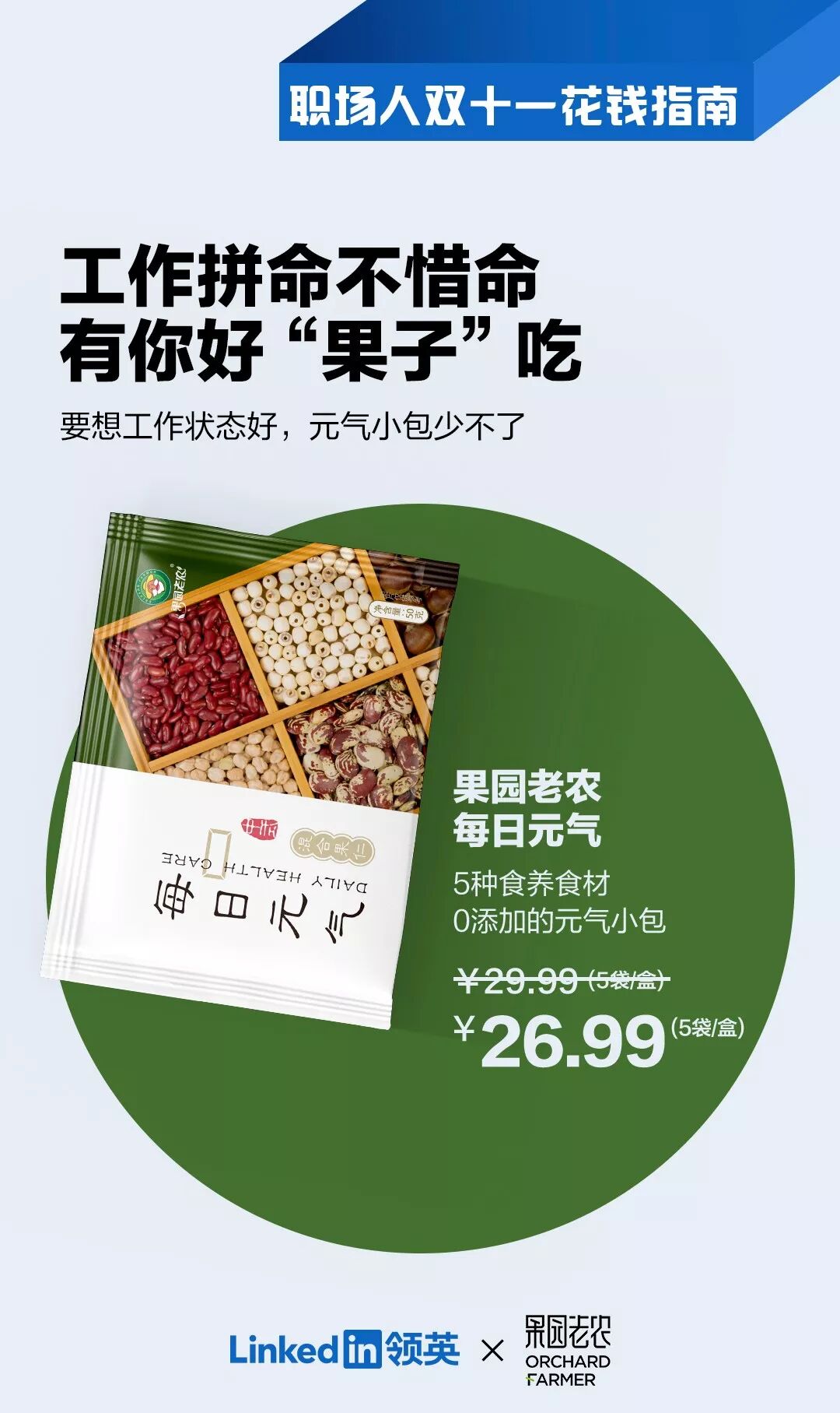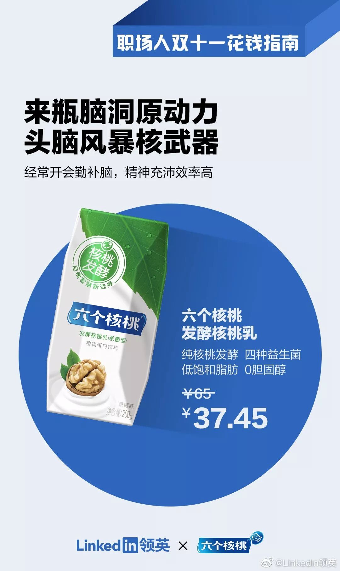 但是领英却从平台定位出发,针对目标人群——职场人,创立特殊的双11话题,聚焦职场人双11买什么,可谓是做到了结合平台特色精准营销。