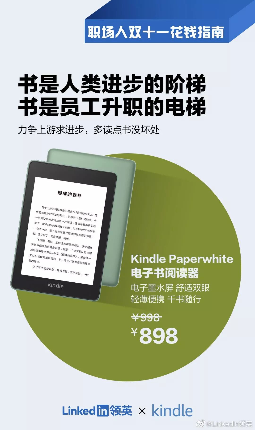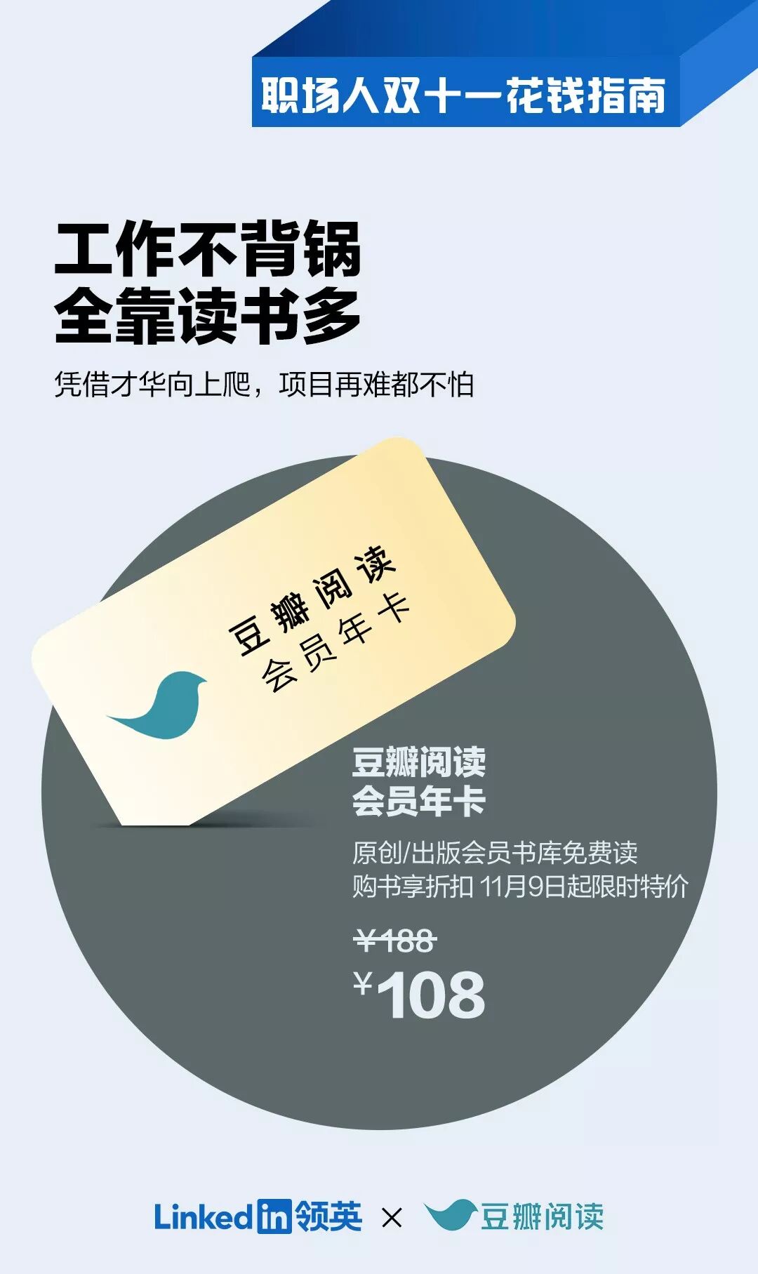 作为职场社交平台,领英在双11期间推出#职场人双十一花钱指南#话题,并联合12个品牌发布了12张海报,告诉职场人双11应该买什么。