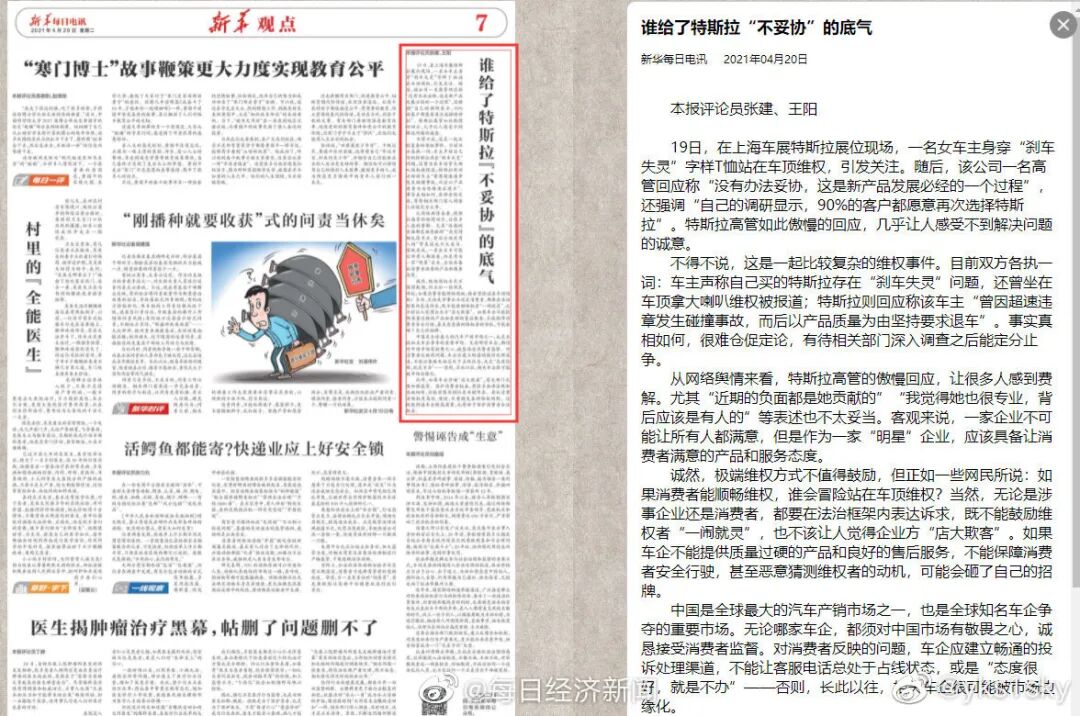 “我们没有办法妥协,就是一个新产品发展必经的一个过程。”“我们自己的调研显示,90%的客户都愿意再次选择特斯拉。”总结起来就是,特斯拉只能夸,不能骂;消费者是特斯拉的实验小白鼠;特斯拉在中国人见人爱。这自信心爆棚的态度,连新华社都忍不住锤它了:谁给了特斯拉不妥协的底气?表示“无论是涉事企业还是消费者,都要在法治框架内表达诉求,既不能鼓励维权者‘一闹就灵’,也不该让人觉得企业方‘店大欺客’。”不仅得罪消费者,还碰瓷国家电网部门,引得新华社敲打,我看特斯拉的负面新闻,都是自己人贡献的才对吧?然而,万万没想到的是,就在我昨天写完这篇文准备今天推送的时候,新媒体人的噩梦出现了,剧情居然反转了!反转了!反转了!看这话术,我严重怀疑是特斯拉的公关部找了公关公司来公关了