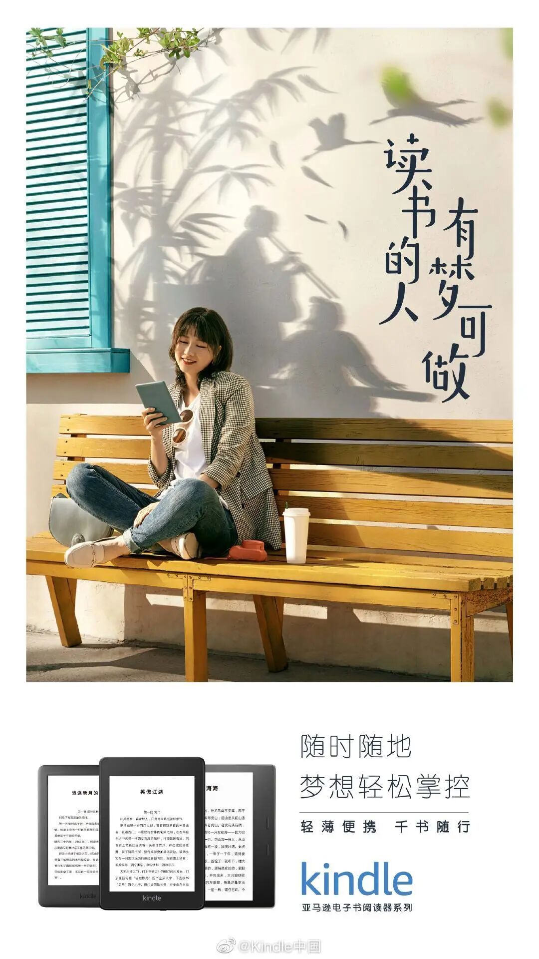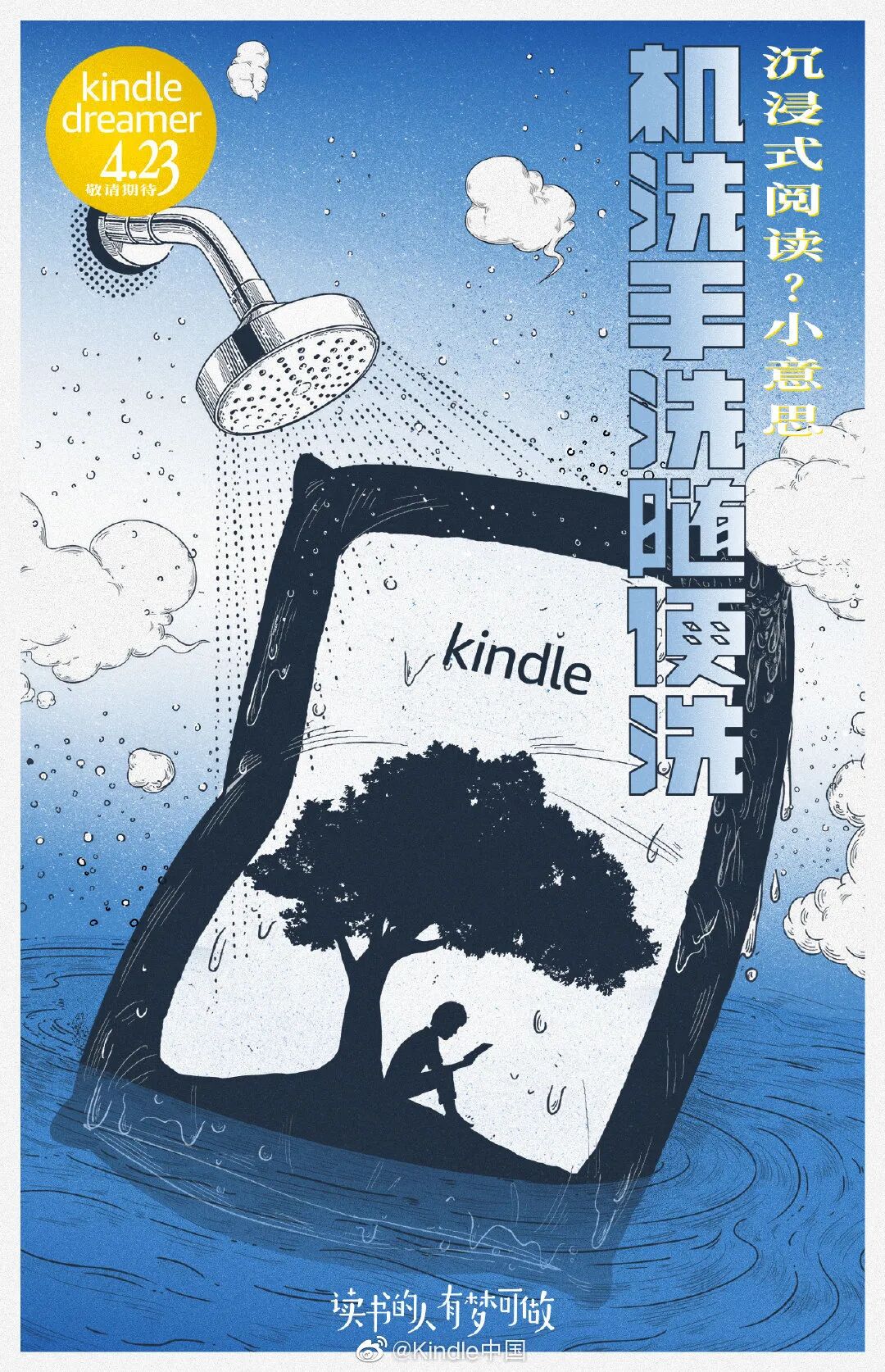 今年世界读书日,Kindle 又开启了「读书的人有梦可做」系列活动,继续鼓舞更多年轻人读书。书,是梦的形状,读一本书,就是在读一个梦,我们跟随文字游走在奇妙的世界里,开启奇幻的冒险。为此,kindle发布了一组海报。