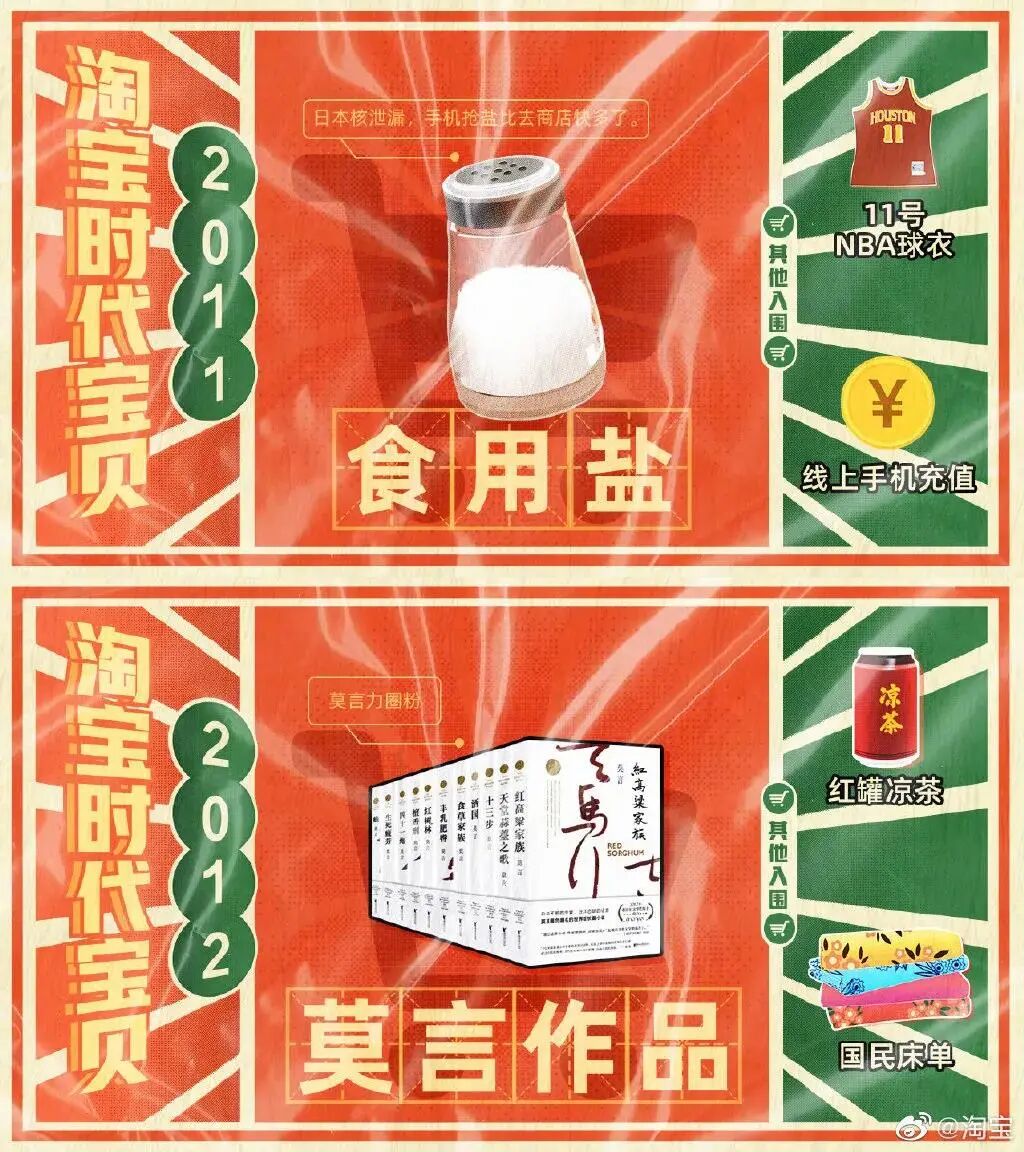 从诞生至今,淘宝催生出过无数爆款。而这些结合网友互动和媒体反馈筛选出来的时代宝贝,不仅是商品,更是记录中国人民消费变迁的一面镜子,承载了国民消费的共同记忆。