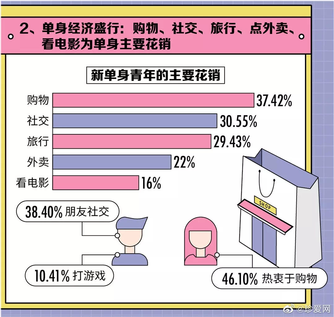 在这一代新单身青年眼里,从情感状态来上虽然是单身,但是他们也能够找到自己的兴趣和消费喜好,做到精神富足。