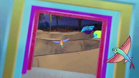 最后,紧跟滑板的视觉体验,观众被带到了酷炫的滑板练习场。场边上,巨大的户外广告牌赫然印着英文“The world is your canvas”(世界是你的画布),正好呼应了短片主题。可以看到整个短片以第一视角呈现,通过虚拟和现实的交错,将世界变成了一个巨大的画布,而 Adobe Photoshop 正是重新演绎这个世界的神奇工具。随着短片中场景的不断推进、变换,Photoshop上的各种奇特功能与效果也被淋漓尽致地展示了出来。然而“一看就会一学就废”,对于大多数人来说,Adobe这类宣传片完全就是大佬级别的花式炫技。无独有偶,Adobe去年还发布过一支名为《Take a fantastic voyage with Photoshop》的宣传片,无论是从镜头、色彩、还是创意上看,都极为相似。