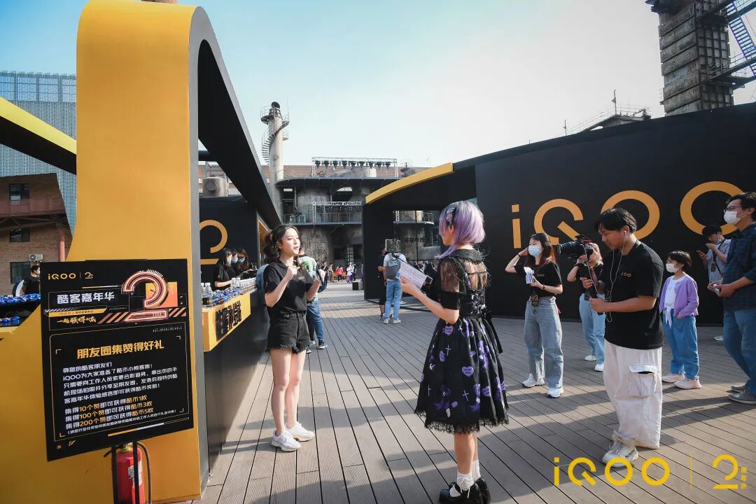5月iQOO进一步打造场景化的终极大趴“酷客嘉年华”,洞察酷客热爱电竞、向往黑科技的特征打造专属头号领地,现场融入视觉享受、感官碰撞、时尚潮流、影音科技等沉浸感元素,设计更懂酷客的产品体验区、游戏互动区、酷客群像馆及能量补给站,以及潮酷互动挑战关卡活动等。