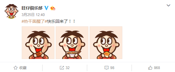比如旺仔,几乎每次网络上有热门话题,都会出现它“蹭热点”的身影。而且相比其他品牌,旺仔经常是最早玩梗的一波。