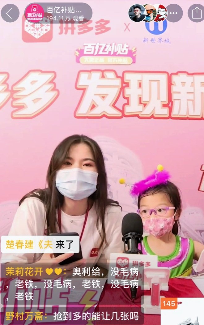 在新世界城的拼多多直播间内,乐乐无意中突然闯入,成为了当天一千多家直播间内年龄最小的“主播”,也给直播间内的194.11万观众带来了意外惊喜。