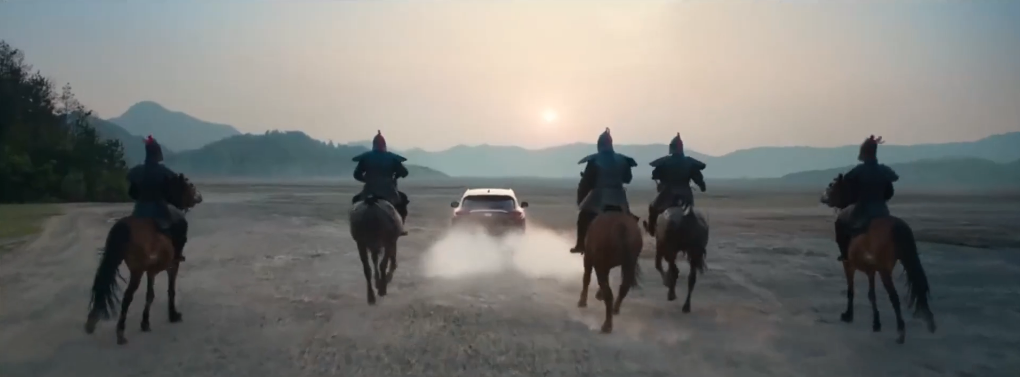 说这支广告片“戏精又吸睛”,一点也不为过。说它“戏精”,是因为总有让人忍俊不禁的反转脑洞;说它“吸睛”,除了这些趣味脑洞,还有整个片子营造出的大气磅礴的气氛对QX50的加持作用。尤其是QX50驰骋在皇宫中,驰骋在都市里,和骏马一起驰骋在广袤天地间,这些镜头都彰显出QX50高端、豪华的产品调性。