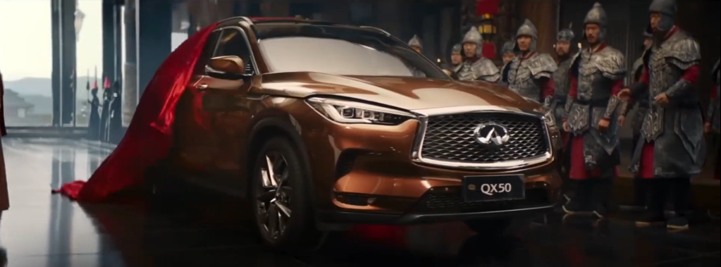 一群古代的大臣对着一辆QX50赞不绝口,这样极具戏剧感和反差感的画面,已经足够令人惊喜。