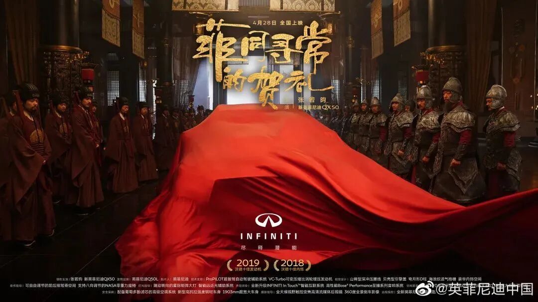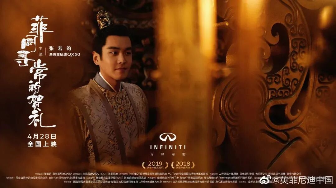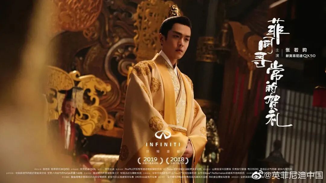 最近,英菲尼迪就携手代言人张若昀推出了一支超级“戏精又吸睛”的古装大片《菲同寻常的贺礼》,用张若昀的演员身份为英菲尼迪QX50赋予了非比寻常的产品魅力,将“惊于颜值,敬于才华”的品牌主张传达给了更多消费者,贡献了汽车品牌中非常优秀的营销案例。