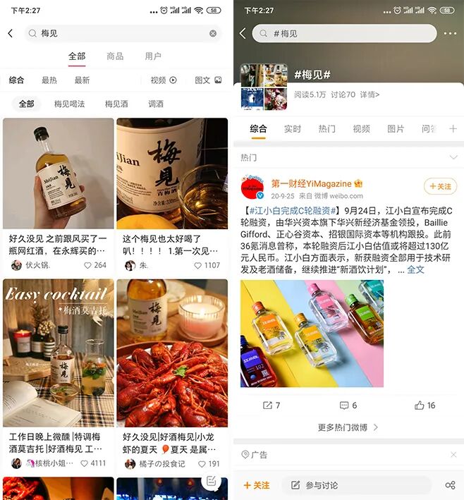 比如靠年轻人起家的江小白旗下产品——梅见,在营销策略上除了常规打法之外,更加注重社媒营销。