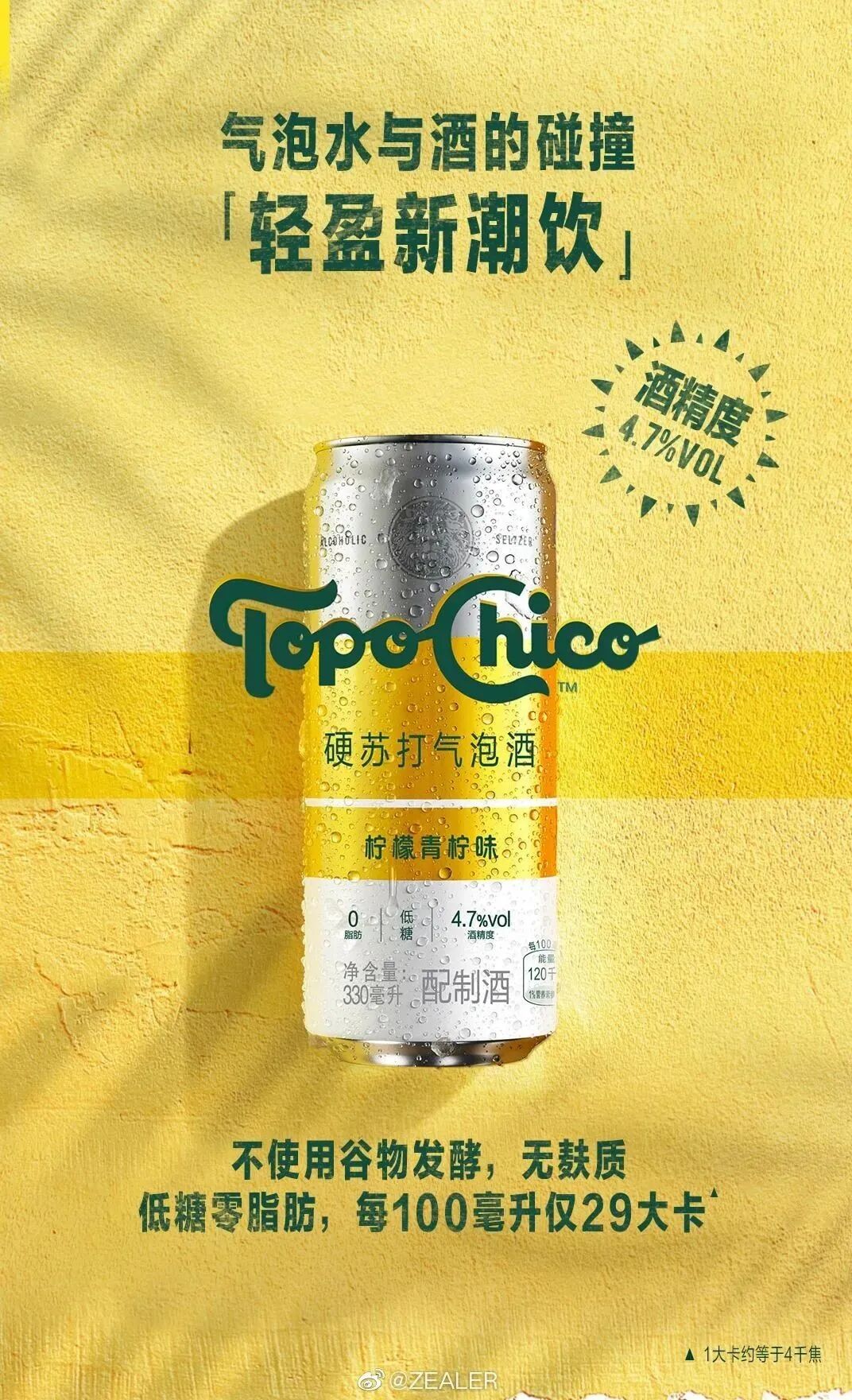 就连卖水的农夫山泉也在去年发布了国内第一款米酒+气泡瓶装饮料新品TOT气泡饮,酒精度0.5%,超高颜值、新奇口味赚足了眼球。