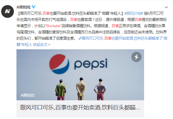 前两天,百事公司便在美国市场提交了最新的商标申请,计划以“Rockstar”品牌销售酒精饮品。