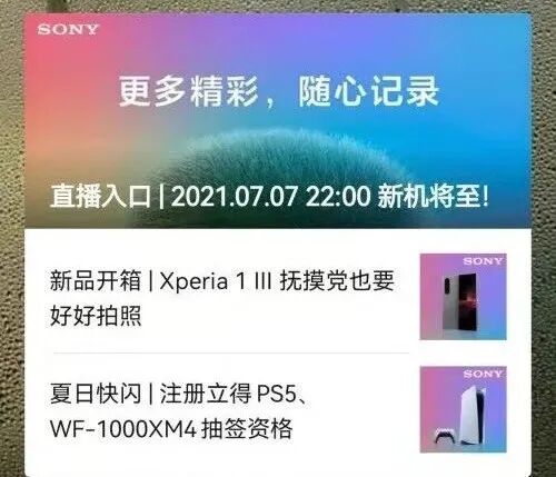原来,就在6月30晚上,索尼在自己的官方微博、微信公众号发了这么一条发布会信息,表示将在7月7日22点发布新机。