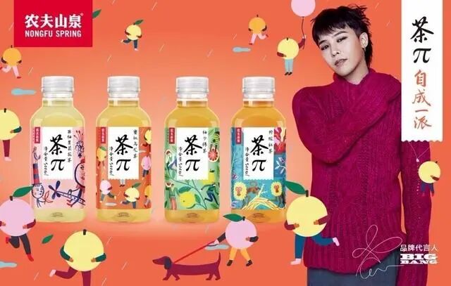 2016年,就在茶π品牌推出仅一个月后,茶π就宣布韩国偶像天团Bigbang成为其品牌代言人。随后,茶π不仅推出了印有代言人图像的新包装,而且还投放了大量的海报。