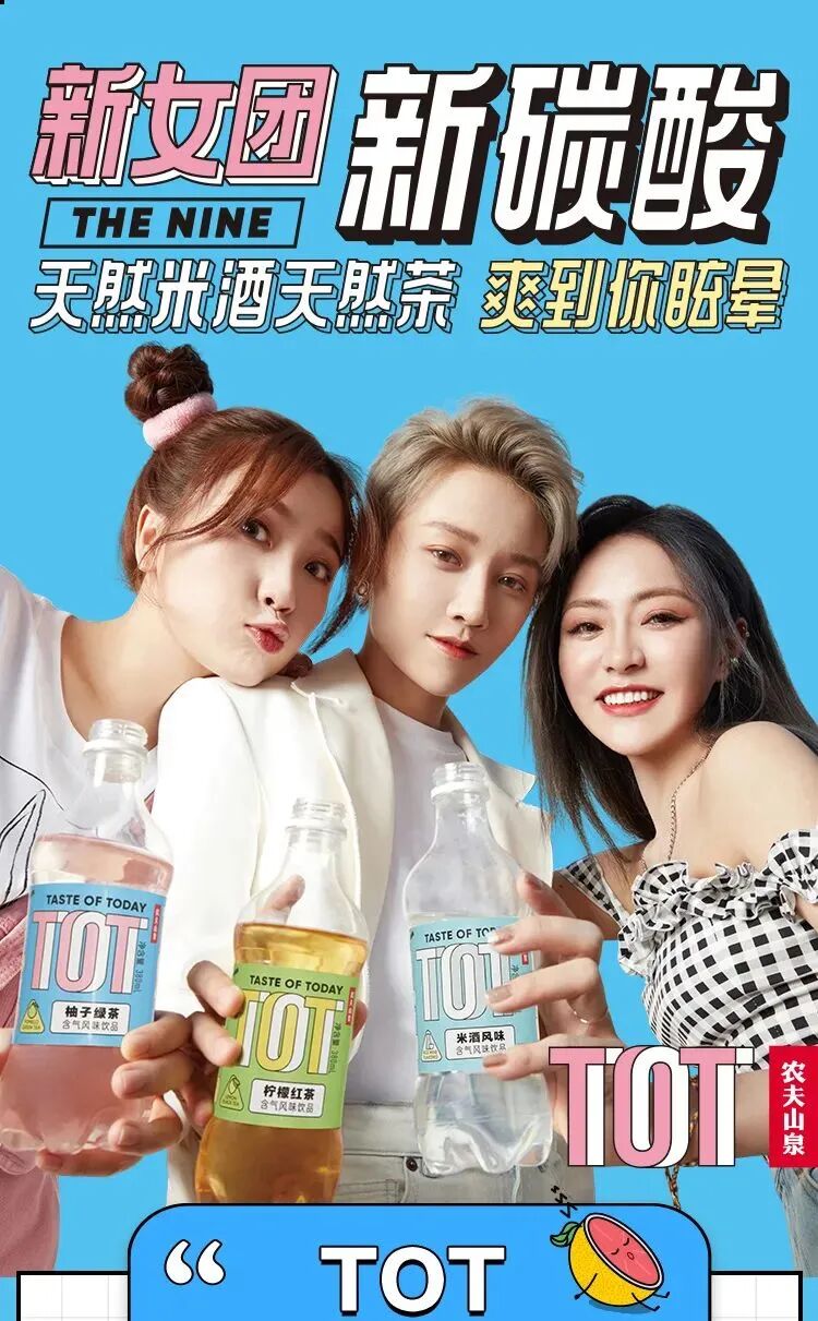 比如元气森林各类产品代言人就囊括了张雨绮、倪妮、王鹤棣等明星偶像;香飘飘请来了王俊凯;农夫山泉有朱一龙、旗下气泡水TOT则请来大火的新生代偶像THE9女团代言;而KellyOne则邀来王一博助阵;而百事旗下的bubly微笑趣泡”是肖战代言;怡泉气泡水则是林彦俊代言......大有一场饮料圈idol营销大集合之势。