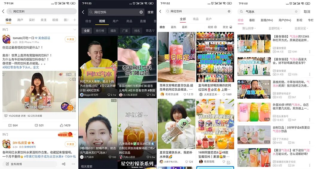 作为新生在社交场上的品牌,面对爱social的年轻人,如今翻开抖音、小红书、B站、微博等社交媒体,各类美食测评KOL、KOC不遗余力的产出各个饮料品牌的种草内容,在社交场上对垒。针对每个平台的内容生态制定特定的玩法,差异化瞄准目标人群,用不同的策略与消费者进行沟通。