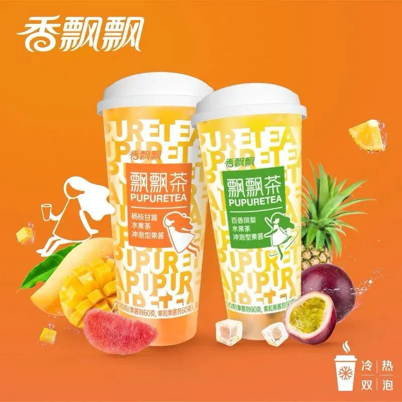 自去年追随年轻人“朋克养生”理念推出波波、好料、双拼三大系列的六款新品之外,近期又推出新品香飘飘冲泡果茶飘飘茶,主打冷热双泡,采用真实果肉和果汁,有杨枝甘露和百香凤梨两种口味。