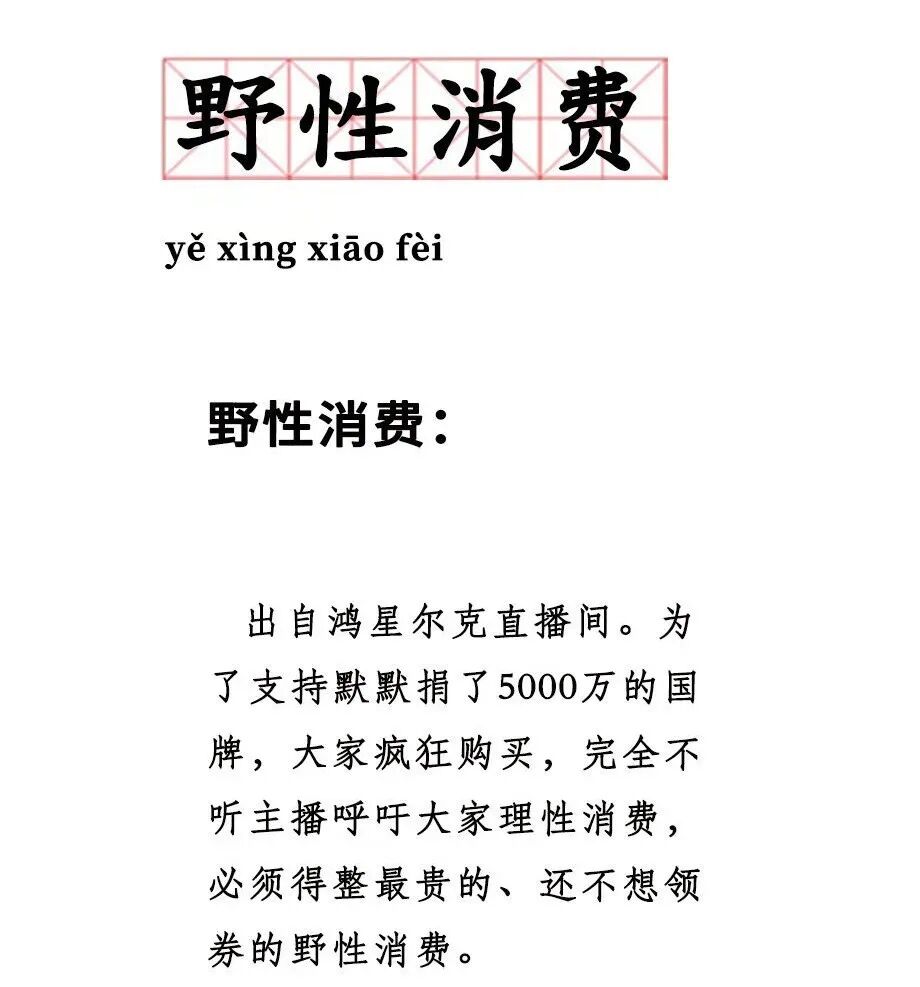 鸿星尔克式消费,我理解就是把“鸿星尔克”四个字消费到底,这就包括野性消费。