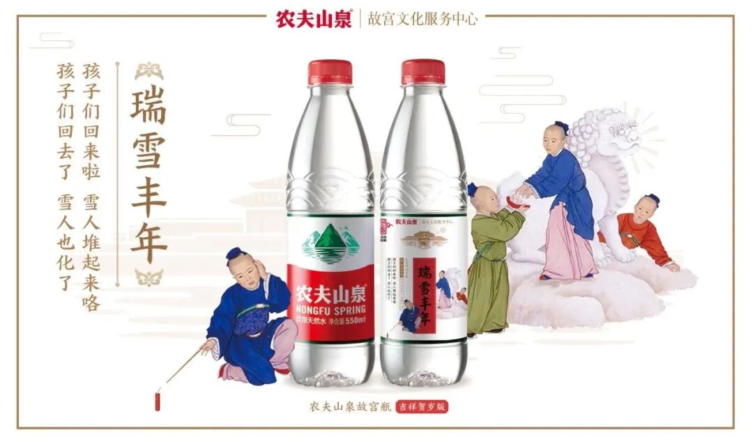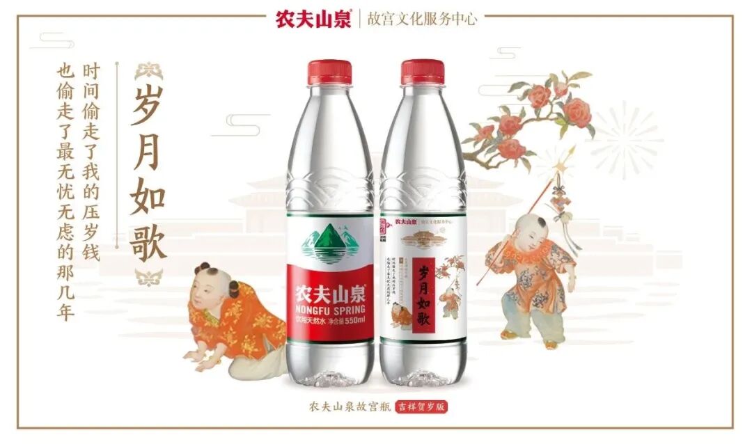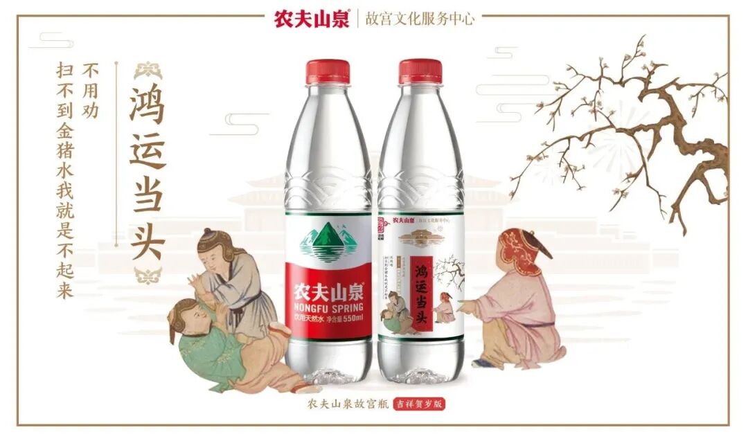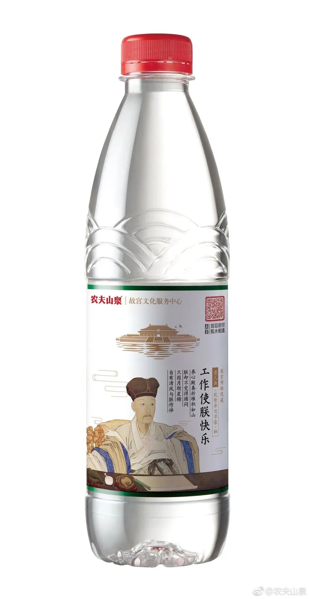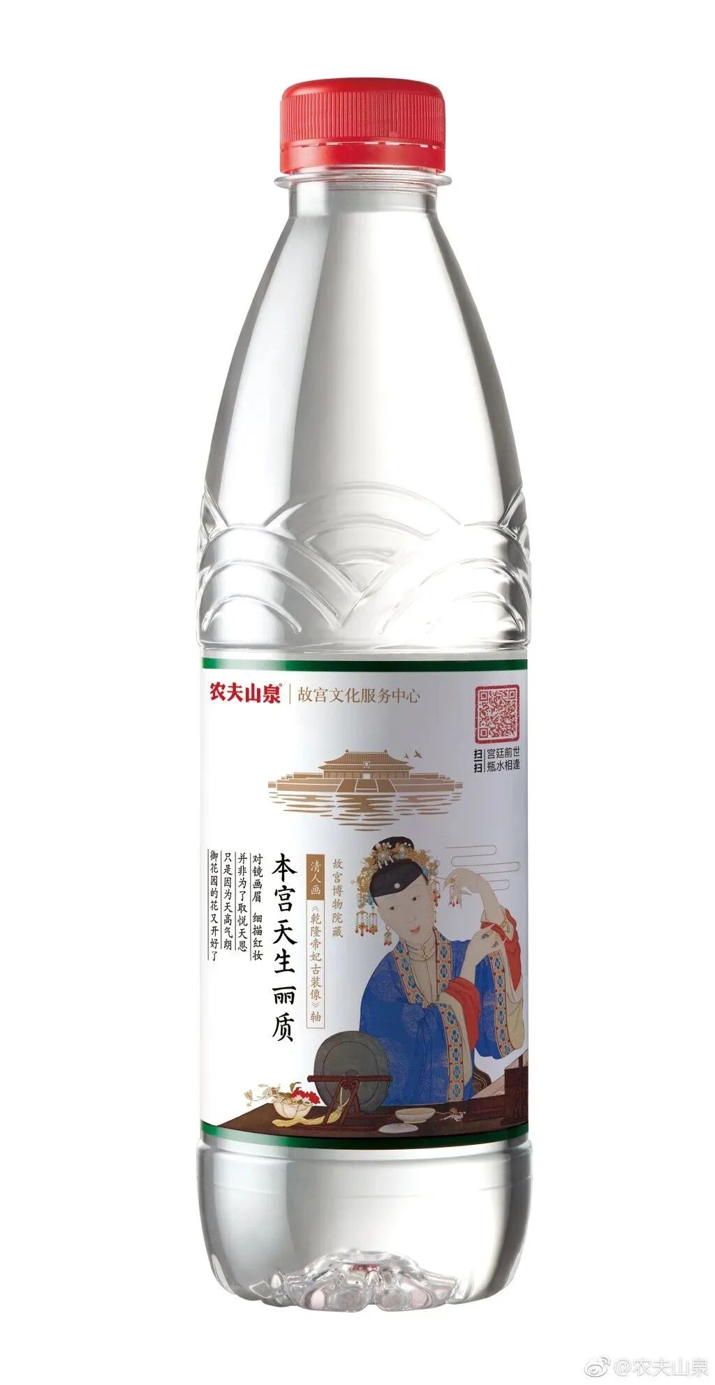 这些瓶身文案,一字一句直戳人心,引发无数人的情感共鸣。不少网友感慨道:喝下的是水,流出的是眼泪。《延禧攻略》《如懿传》等清宫剧热播时,掀起了一阵观众到故宫打卡的热潮。农夫山泉便迅速联合故宫文化服务中心,推出了9款限量版“故宫瓶”。