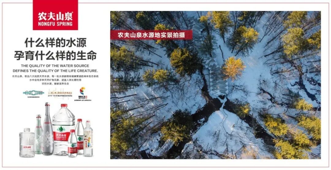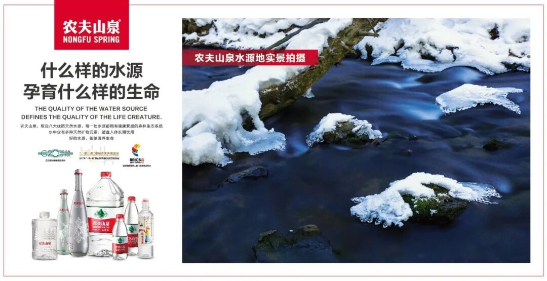 广告语简单而深刻,轻轻松松就为品牌贴上了“绿色”“天然”“无污染”等标签,进一步深化了农夫山泉是“健康好水”这一品牌印象。“每一滴水,都有它的源头”来自农夫山泉官方纪录片——“美丽的中国,美丽的水”系列之二。讲述的是:农夫山泉的水源勘探师,为了寻找优质的水源,在深山密林中整整找寻了8年的故事。好水质源自好环境,农夫山泉每一滴水,都有它的源头。农夫山泉自称“大自然的搬运工”,那搬运的都是哪里的天然水呢?为解答消费者这一疑问,2018年,农夫山泉推出了一支在水源地长白山实景拍摄的宣传片。以森林中生灵万物的视角,展现了水源地美丽而真实的风貌。