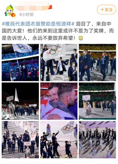 特别是看到恒源祥这句话,真的被狠狠地暖到了。因为淋过雨,所以想为他人撑伞。这大概就是大国和中国老品牌的情怀,为难民代表团提供有精神气的服装,让他们可以为自己的国家体面出场。