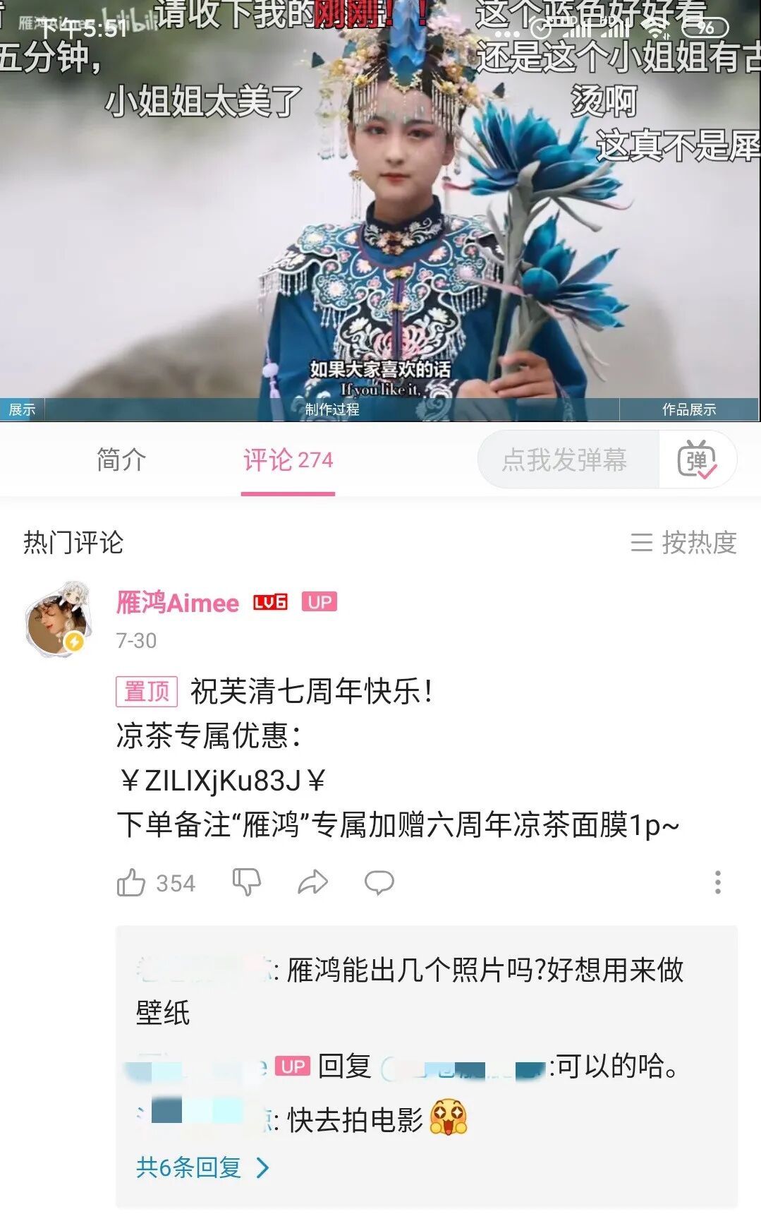 为了进一步释放品牌影响力,触发消费者对产品的向往,在年轻人聚集地b站,芙清也上线#打工人享清福#话题,带动众多up主积极参与讨论、互动,无论是美妆KOL的种草,还是国风KOL的剧情、变装演绎,都从多维度强化了受众对于“享清福”概念与品牌产品的感知。