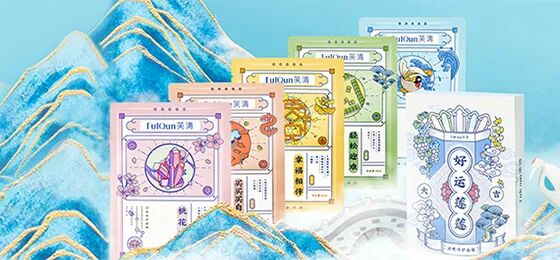 值得一提的是,国潮风尚的价值延续之外,芙清今年的凉茶面膜IP还融入了盲盒玩法。不仅面膜外盒包装采用抽签式的包装设计,盒中不同主题的面膜也是随机放入,这意味着用户需要通过收集才能拿到5个主题签文的面膜。对用户而言,在护肤过程中还能够体验抽取盲盒的未知期待和快乐。这一玩法的推出,也让“收集控”们将关注重点落在能否一次集齐5种主题签文上。
