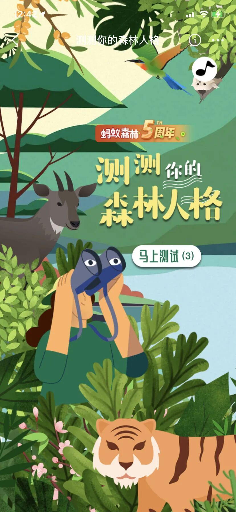 延续“萌”的风格,支付宝还推出了森林人格测试的小游戏。