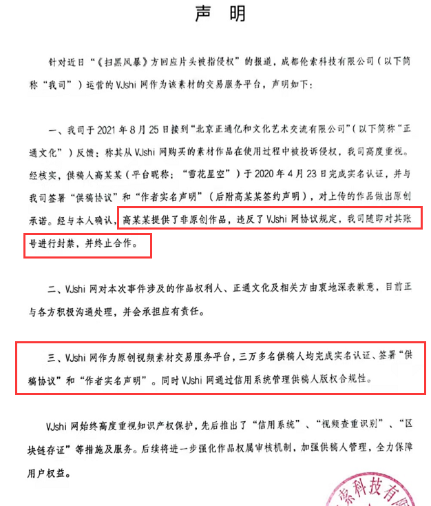 就在昨天下午,《扫黑风暴》片头制作方亿和视效发微博发声,表示是今年7月21日从VJshi网购买的,这个作品标题为“老房间老物件静物延时”。不过,就这个声明来看,也多少实锤了博主的说法。《扫黑风暴》片头的内容,确实跟“老屋“、“延时”等元素相关。我寻思着难不成这场关于抄袭的喊冤,是博主想要碰瓷,上演自编自导自演的戏码吗?没想到,博主接下来的发声,又把我看傻了——没有上传,没有出售。真相变得更加迷了。就在昨晚,VJshi网终于作出最后的解释。这既不是《扫黑风暴》表面做一套背地里做一套,也不是博主在故意碰瓷搞事情。原来是一位叫高某的,拿了别人博主的作品冒充原创,还一本正经地签了协议,按“原创”的名义上传到了VJshi网。结果《扫黑风暴》真不巧就买了这个非原创的素材,拿来当电视剧的片头,最后还让真正的原创者看到了。所以,原创作者和片方都是受害方无辜躺枪。一环扣一环的抄袭门故事,至此真相终于浮出水面,整个过程网友都捏了一把汗。
