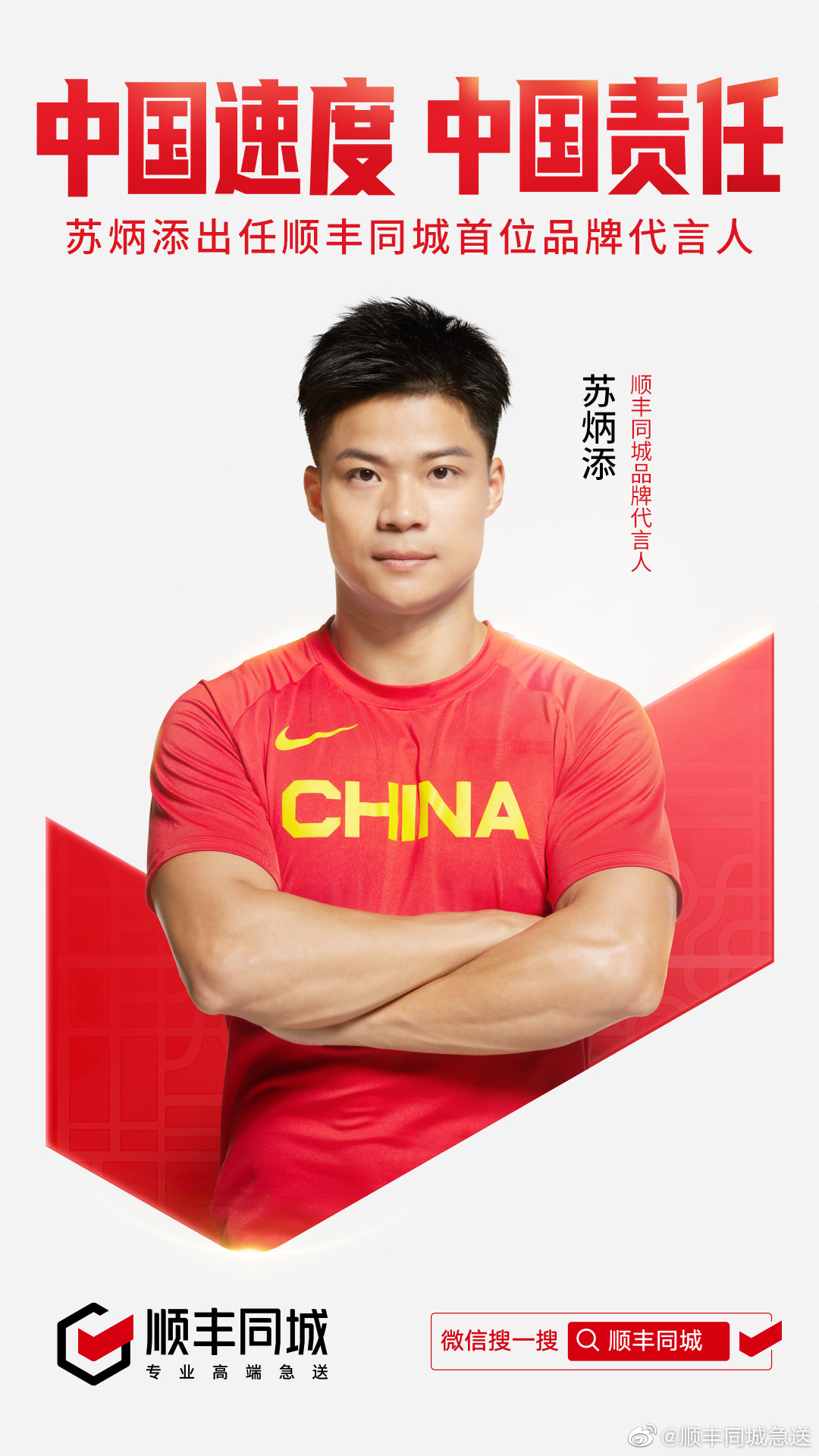近日,顺丰同城官宣苏炳添出任首位品牌代言人,“快”是即时配送的最典型特征,“快”也是人们对苏炳添的最直观了解,即时配送和亚洲飞人可谓是天然的结合。顺丰同城CEO孙海金表示:“苏炳添是出色的短跑运动员,他的强劲实力、拼搏精神以及高度的责任感与使命感,都与顺丰同城的品牌精神相契合。”