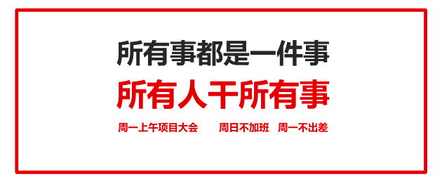 那天我看到华与华有一个准则叫“周日不加班,周一不出差”,为啥呢?因为周一上午项目大会!我看了以后,觉得这家公司真硬气、真牛!