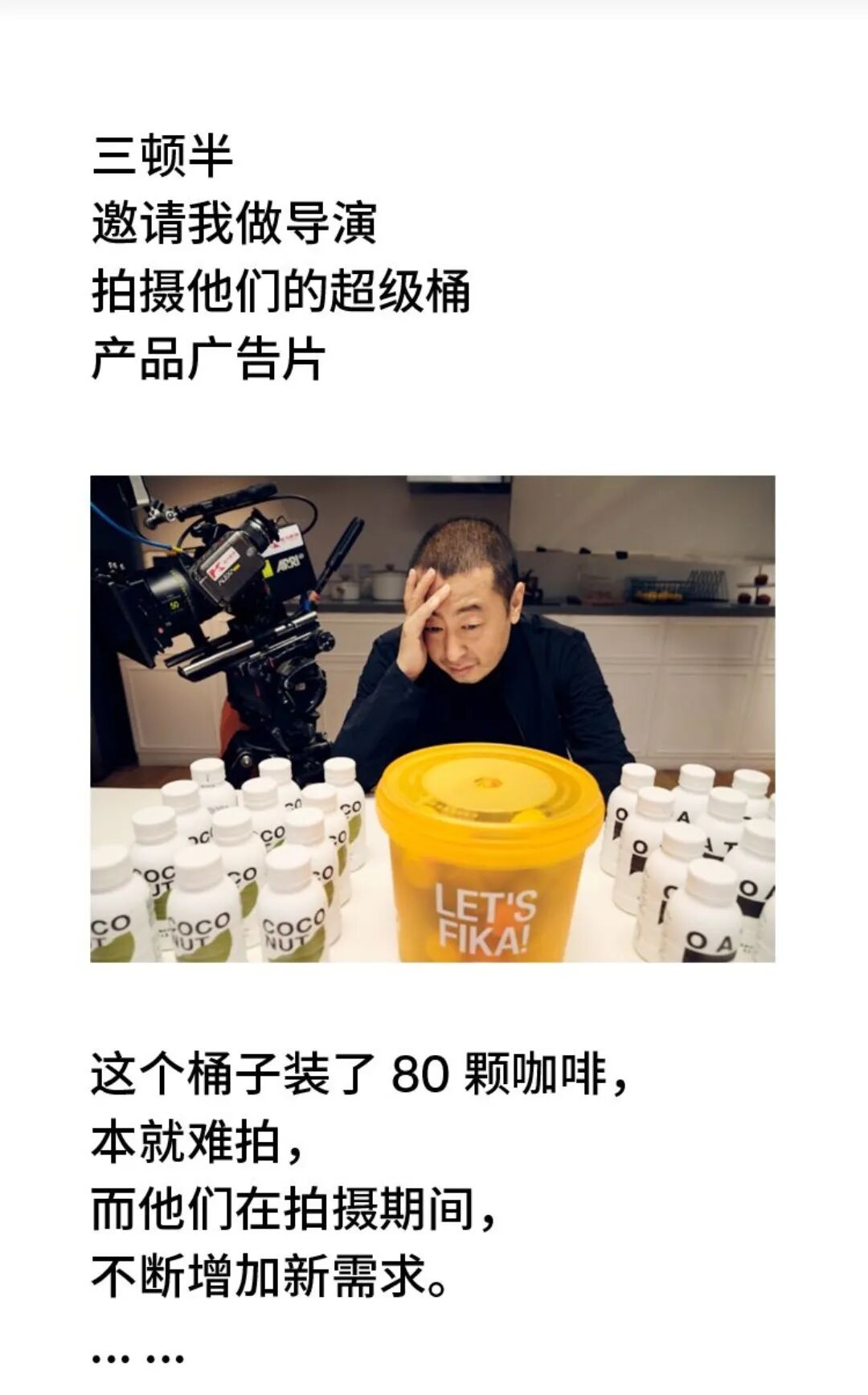 点开一看,好家伙,原来是三顿半邀请贾樟柯拍摄他们的产品超级桶广告片。