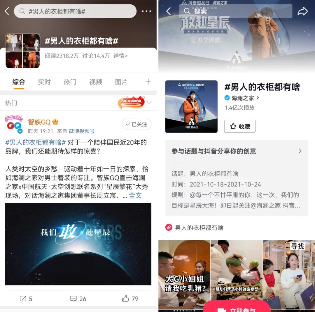 与此同时,不乏有品牌洞察2021年中国航天大年的大背景借势营销。但说到航天二字总会让人觉得高大上,如何将航天话题落地是一道营销难题。最近抖音超品日与海澜之家的一场航天主题活动,就做到上接高度下接地气,给行业提供了值得借鉴的经验,接下来且听我拆解。