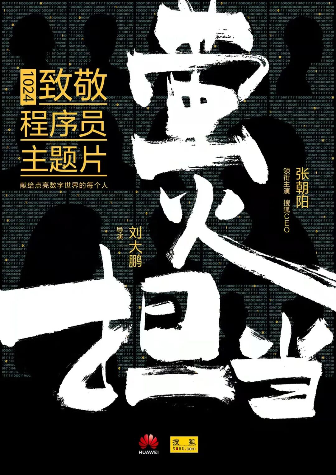 在10月24日程序员的节日,华为联合搜狐发布了一条致敬程序员的主题片《萤火担当》,搜狐 CEO 张朝阳出镜,导演是张大鹏!